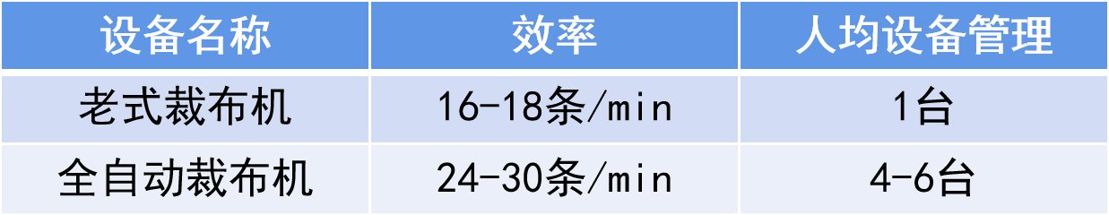 由以上數(shù)據(jù)可知,全自動(dòng)裁布機(jī)顯著提高工作效率。